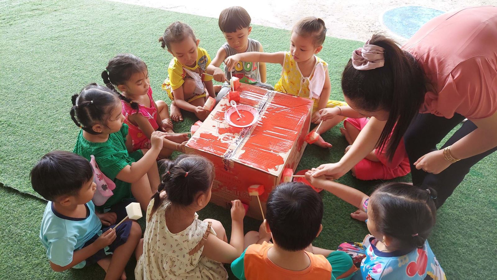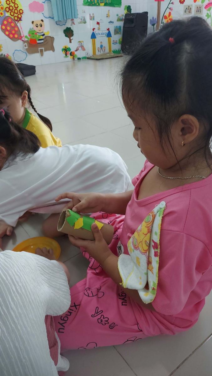 Nằm trong chuỗi hoạt động Vui Tết trung thu các bạn nhỏ khối chồi đã tham gia tái chế những chiếc thùng carton thành những chiếc đầu lân rực rỡ đầy màu sắc, những chiếc lõi giấy tưởng chừng như bỏ đi qua bàn tay các bạn cũng trở thành những chiếc lồng đèn thật xinh xắn và các bạn đã dùng những sản phẩm của mình để trang trí trường lớp thêm đẹp, thêm xinh..jpg)