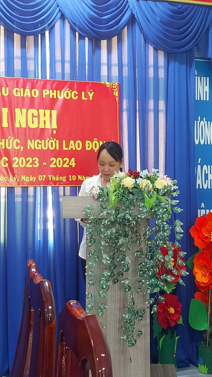 Ngày 07/10/2023 CĐCS trường MG Phước Lý phối hợp với BGH nhà trường tổ chức  “Hội nghị cán bộ, công chức, viên chức, người lao động năm học 2023-2024" thành công tốt đẹp.